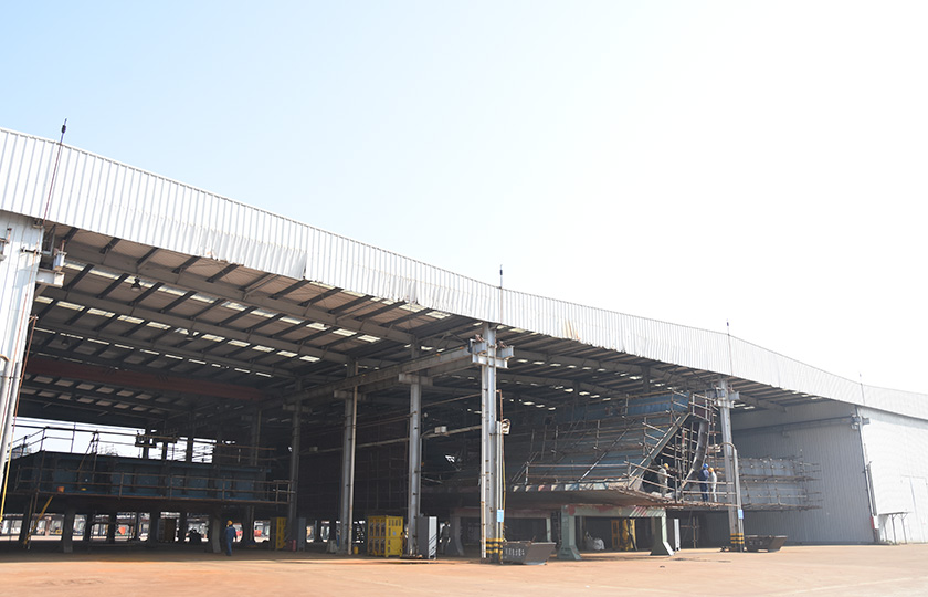 公司總投資達(dá)22億元,年造船載重噸位為80萬噸,一級I類造船企業(yè)。廠區(qū)總占地面積135.83萬平方米,岸線長度1355米,長達(dá)740米舾裝碼頭1座,擁有八萬噸級大型船臺兩座,擁有單臺起重能力達(dá)450t門吊3座,單臺起重能力32t塔吊3座。